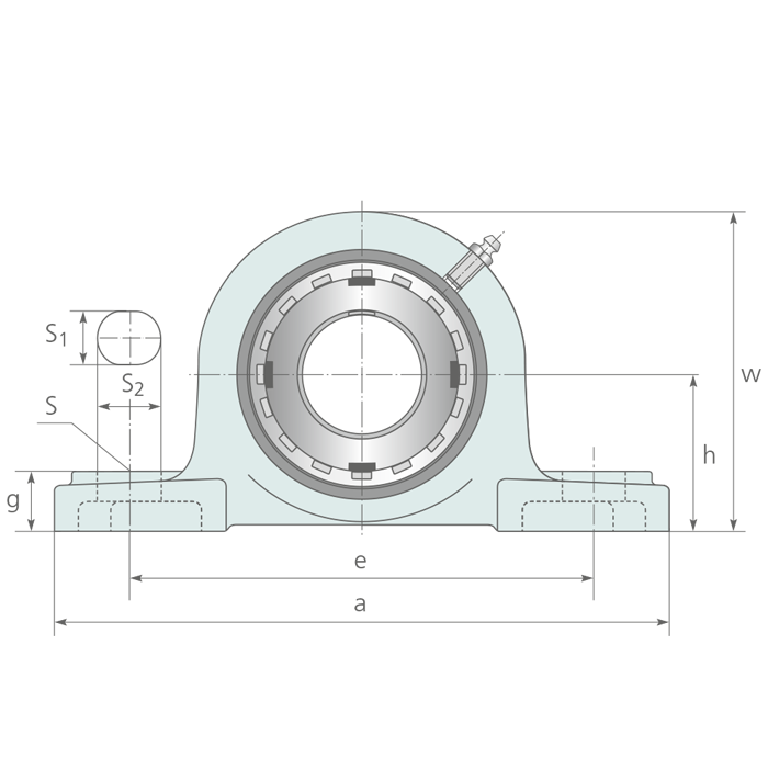 d[mm] | h | a | e | b | S1 | S2 | g | w | Bi | n | S Schraube | Lager | Gehäuse | dyn.C | stat.C0 | [kg] | |