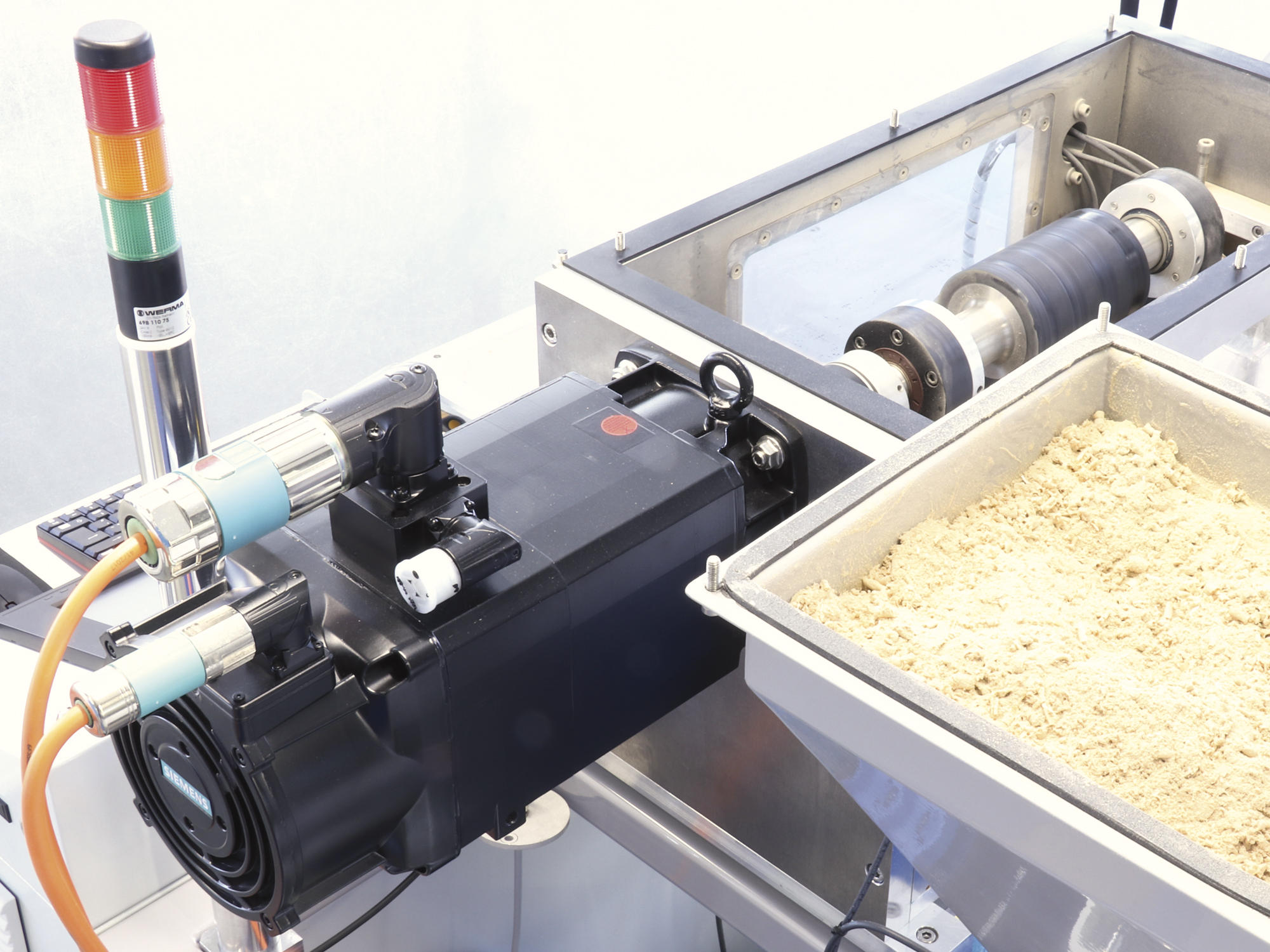 Die Motordrehzahl ist zwischen 2.000 rpm und 10.000 rpm frei wählbar und deckt so ein weites Spektrum ab. Im Fokus stehen aktuell Lagertypen wie z.B. Rillenkugellager 608 oder 6002, aber auch 6205, die im Vierersatz verbaut werden. Eine Besonderheit dieses Prüfstandes besteht in der Kraftaufbringung der Radiallast.