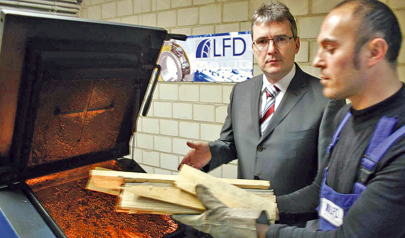 Ersparnis an Heizkosten: über 50 %. Durch die Kombination aus Gas- und Holzverbrennung werden zudem die Einwegpaletten und andere Holzverpackungselemente CO2-neutral entsorgt. - Verpackungen umgestellt: Alles wird in den Wertstoffkreislauf zurückgeführt. Kunststofffolien werden gepresst und gehen zurück in die Kunststoffindustrie. Stahlbänder gehen gesammelt in die Stahlverarbeitung zurück, Kartonagen und Papier werden gepresst, aufgeschwemmt und wandern wieder in die Papierindustrie.