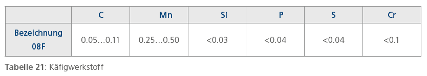 Das Material für die Ringe und Wälzkörper ist ein niedrig legierter, durchhärtender Chromstahl mit hoher Reinheit.