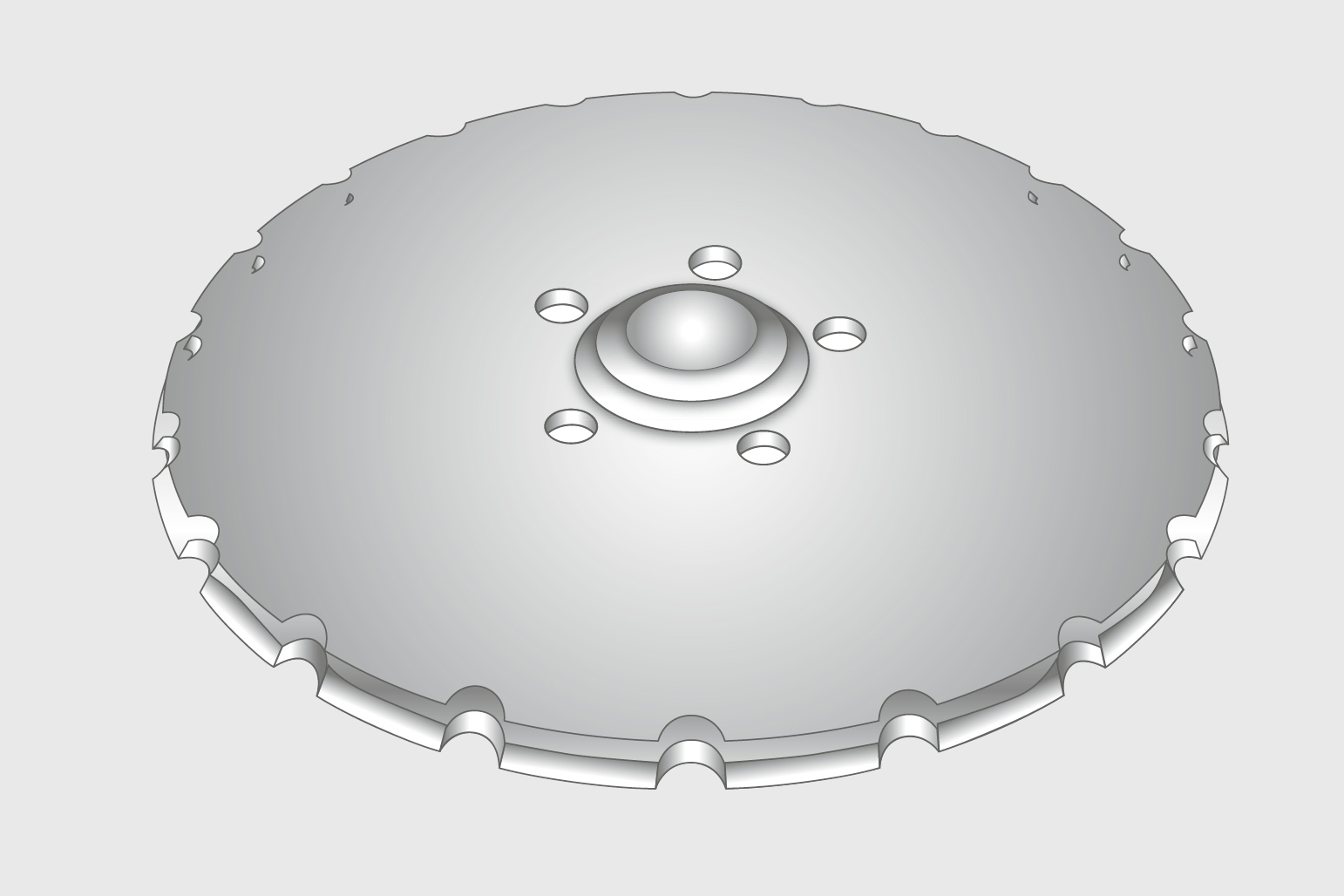 Nehmen wir daher nur ein Beispiel der Entwickler: Ein Gehäusedeckel in einer Scheibenegge mit einem Eggenscheibendurchmesser von 510 mm wiegt 200 g (passendes LFD-Lager: Kegelrollenlager. 30206 A). 100 solcher Gehäusedeckel wiegen also allein 20 kg. In Sämaschinen kann auf einen von zwei Gehäusedeckeln verzichtet werden, weil die Säscheibe (Bild 1) selbst das Lagergehäuse als Gehäusedeckel schließt. Die Gewichtsersparnis in der Maschine liegt also bei 20 kg. In Scheibeneggen kommen übrigens keine Rillenkugellager, sondern Kegelrollenlager oder Schrägkugellager zum Einsatz, weil diese Arbeitsgeräte starken axialen Kräften und Kippmomenten ausgesetzt sind.